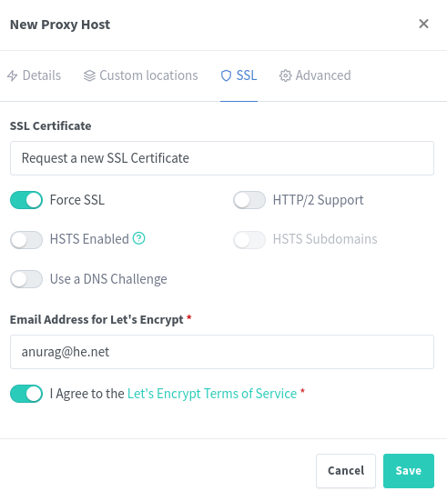 - Click save and wait for reverse proxy vhost to be deployed with a TLS certificate